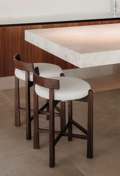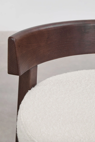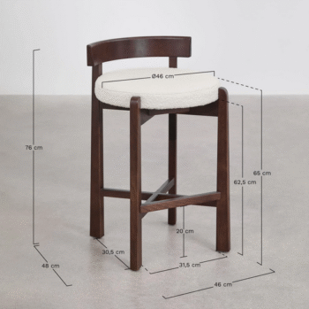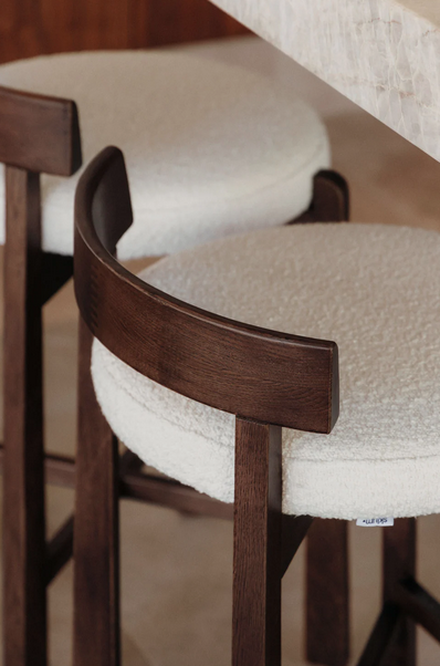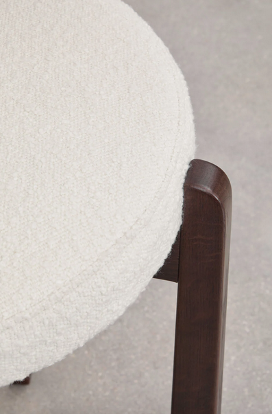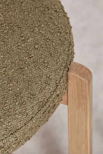 Aukštas baro kėdės išsiskiria subtiliu dizainu ir kokybiškomis medžiagomis. Konstrukcija iš ąžuolo medienos suteikia tvirtumo, o minkšta poliesterio boucle tekstūros sėdimoji dalis – prabangos ir komforto pojūtį. Poliuretano putų užpildas užtikrina ergonomišką sėdėjimą, o integruota kojų atrama padidina patogumą. Natūralios spalvos ir minimalistinė forma leidžia šį baldą lengvai pritaikyti prie įvairių interjero stilių, nuo modernaus iki skandinaviško.
