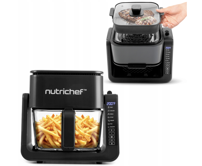 Atraskite modernų būdą gaminti sveiką, greitą ir skanų maistą! NutriChef Airfryer & Elektrogrill – tai daugiafunkcis „7in1“ virtuvės prietaisas, kuriame apjungiama 1500W galia, karšto oro technologija ir grilio funkcija kompaktiškame korpuse. Virkite, kepkite, kepkite ant grotelių, skrudinkite ir šildykite – viskas viename prietaise su minimaliu riebalų kiekiu.