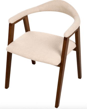Ši kėdė pasižymi moderniu dizainu ir funkcionalumu. Aukštos kokybės boucle apmušas, minkštas putų užpildas ir ergonomiškas atlošas užtikrina komfortą ilgesniems pasisėdėjimams. Tvirtas kaučiukmedžio rėmas suteikia stabilumo, o šiltos spalvos ir tekstūros papildo interjerą natūralumu ir elegancija.