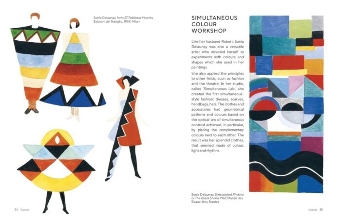 Colours kupina žinių apie tai, kaip pažinti spalvą ir pritaikyti ją savo kūryboje. Knygoje gausu įkvėpimo iš pasaulio menininkų, tokių kaip Paul Klee, Claude Monet, Vincent van Gogh, Sonia Delaunay ir daugelio kitų.