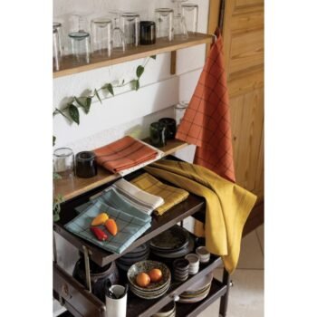 Virtuvinis rankšluostis iš 50 % lino ir 50 % medvilnės mišinio, austas iš dažytų siūlų, todėl yra lankstus ir švelnus. Galima rinktis iš 4 spalvų – šis rankšluostis suteikia virtuvei šviesos ir energijos. Derinkite languotus raštus su dryžuotais tos pačios KILIA kolekcijos rankšluosčiais ir sukurkite savo virtuvę, atspindinčią jūsų stilių.