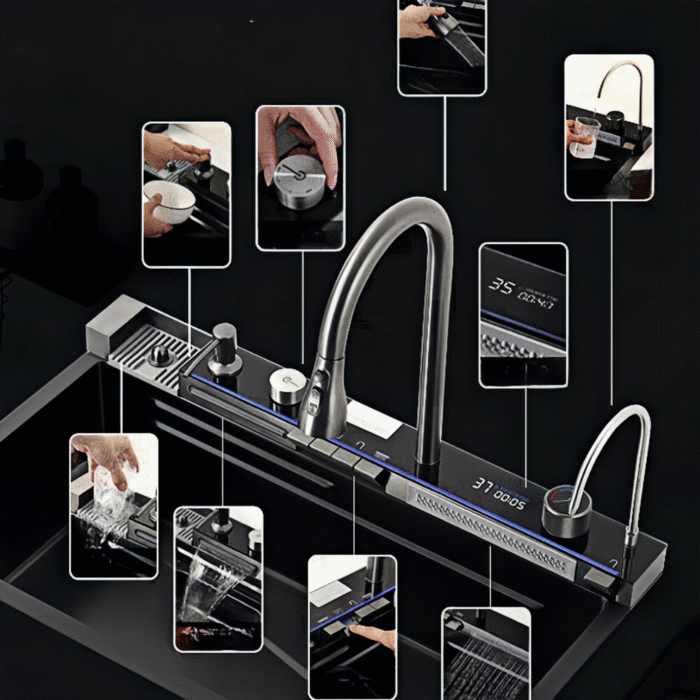 Ši daugiafunkcė plautuvė su dviem reguliuojamomis tekančio vandens kryptimis – puikus pasirinkimas mėgstantiems gaminti. Plauti salotas, vaisius ar net trapius indus galima švelnesne srove, o intensyvesnė – puikiai tinka greitam skalavimui. Gilus dubuo, lentynėlė, dozatorius ir maišytuvas leidžia virtuvės darbus atlikti patogiai, efektyviai ir tvarkingai. Ilgaamžė konstrukcija su atsparia grafito spalvos apdaila tarnaus metų metus.